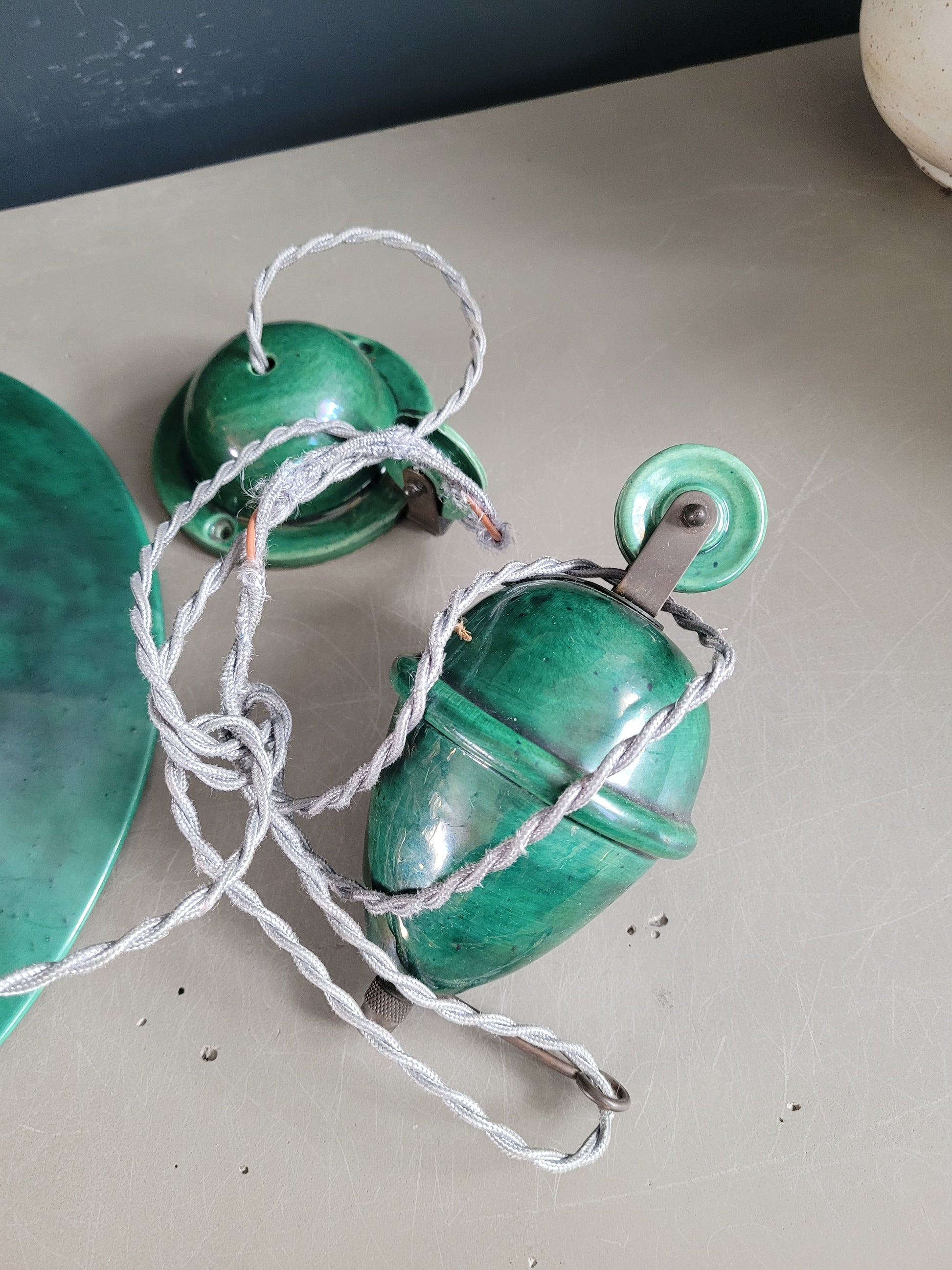 Suspension à poulies en céramique émaillée verte - Ref 641