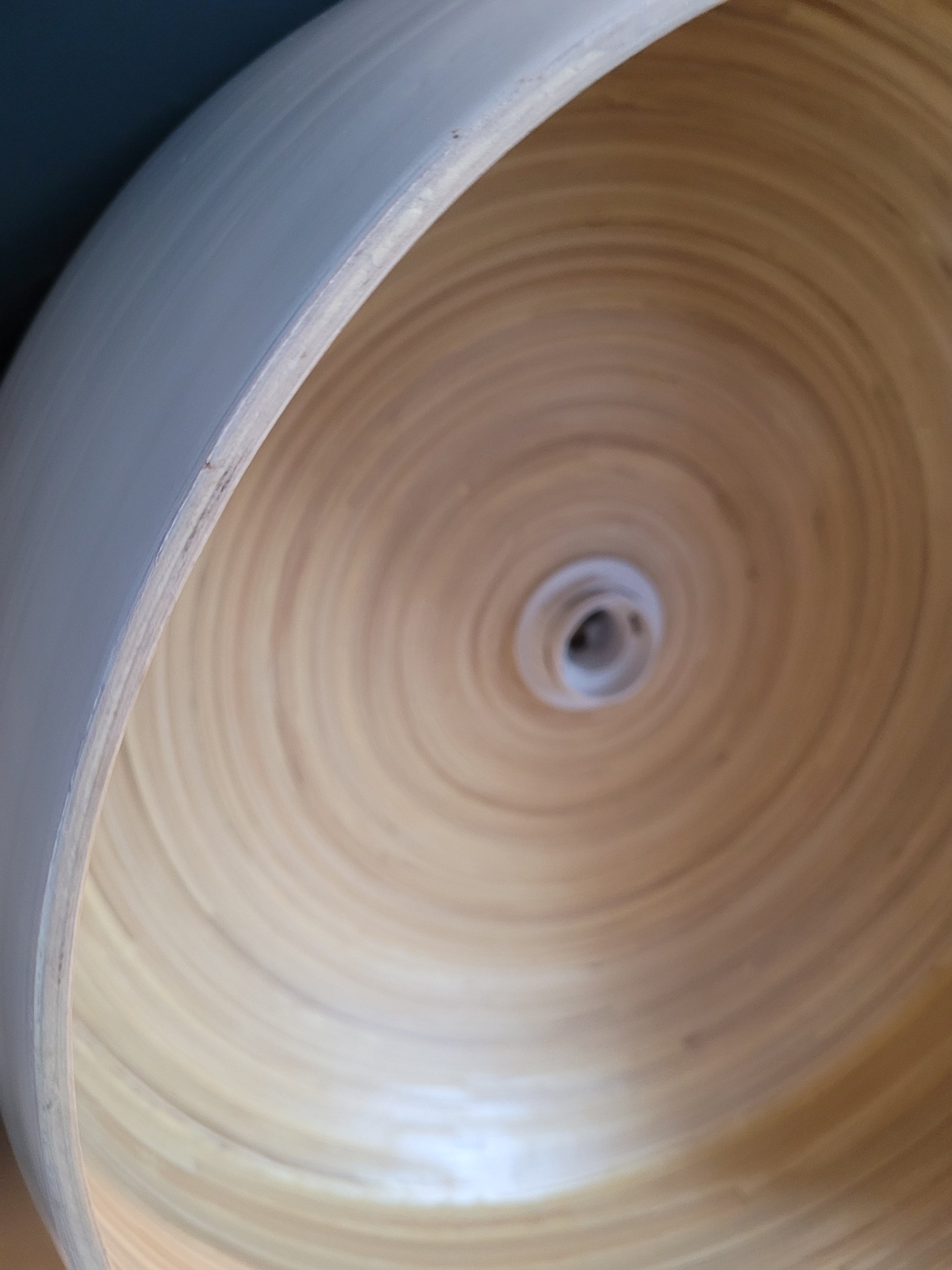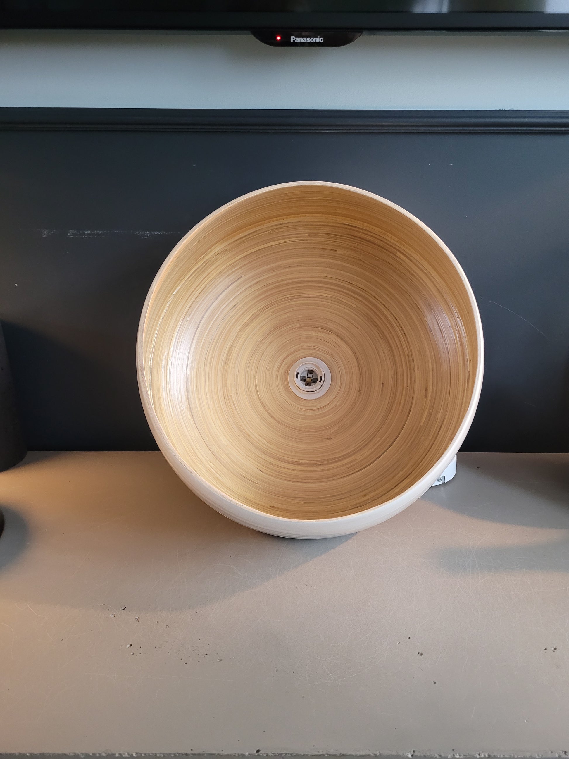 Superbe suspension en bambou, naturel à l'intérieur et laqué blanc à l'extérieur.
