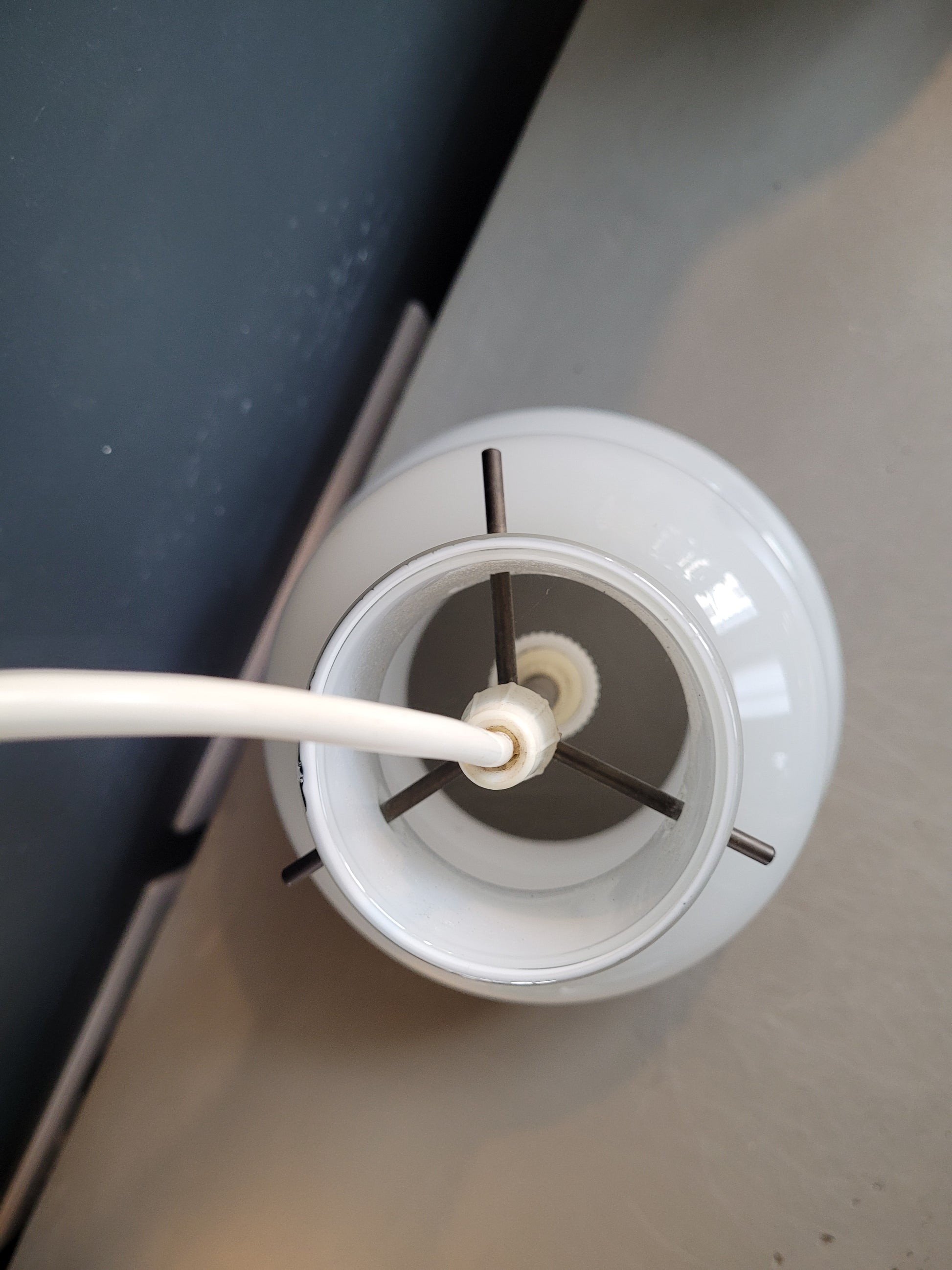 Magnifique suspension vintage en verre bicouche gris clair à l'extérieur et blanc à l'intérieur.