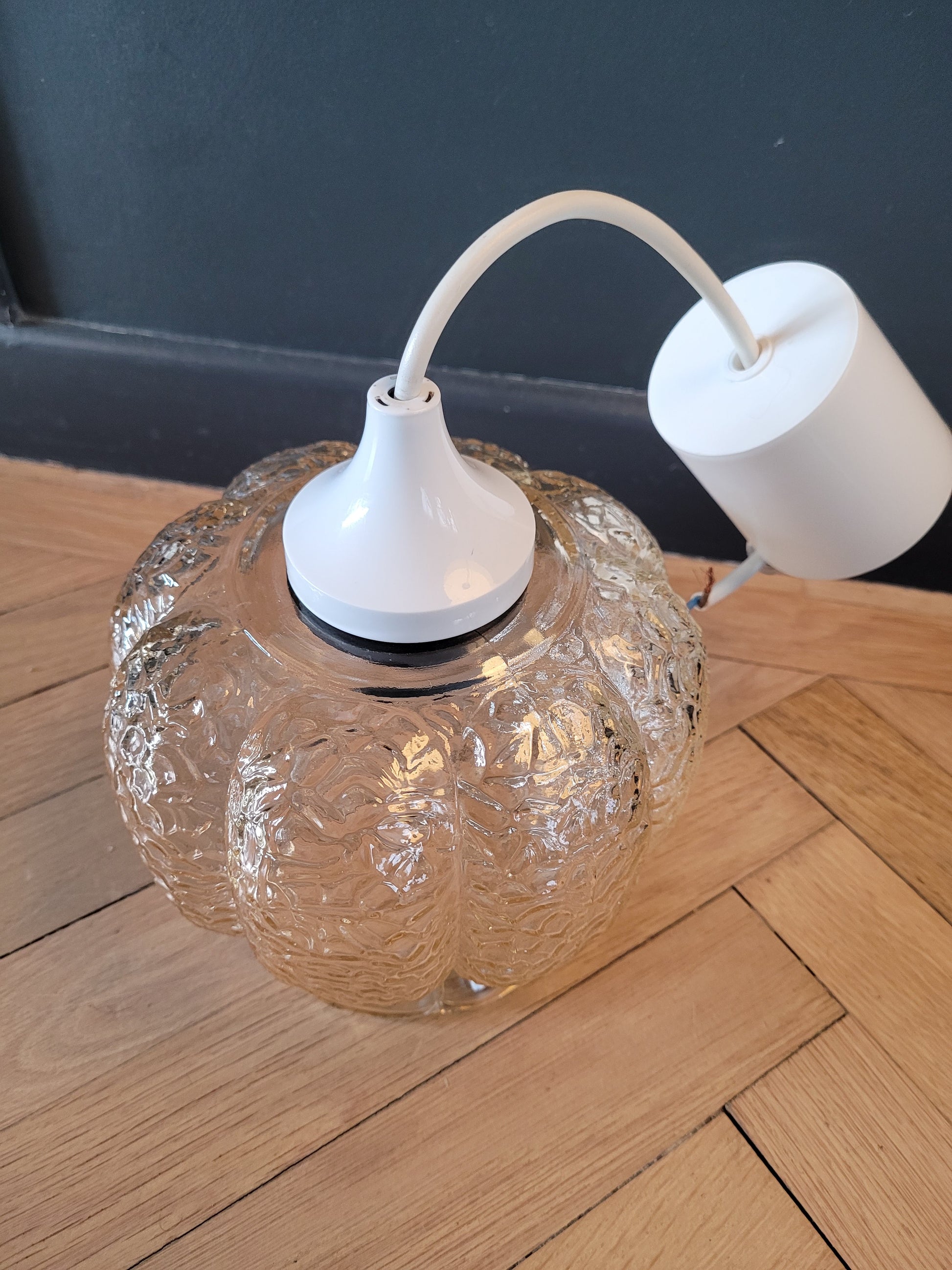 Le globe seul mesure 13cm de haut pour 16cm de diamètre, hauteur avec l'attache 19cm, longueur du fil 25cm.