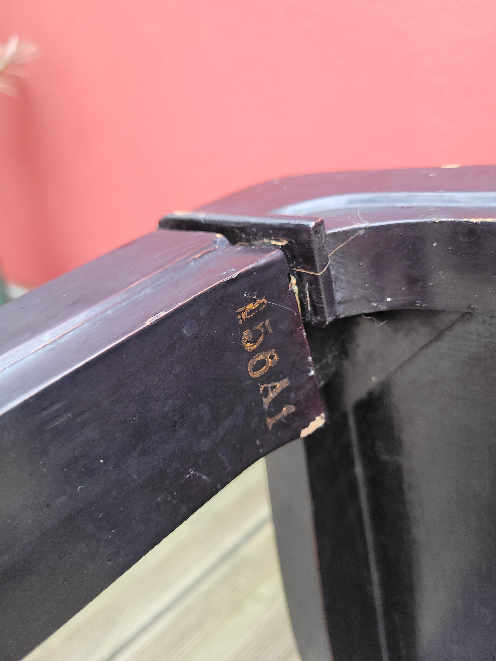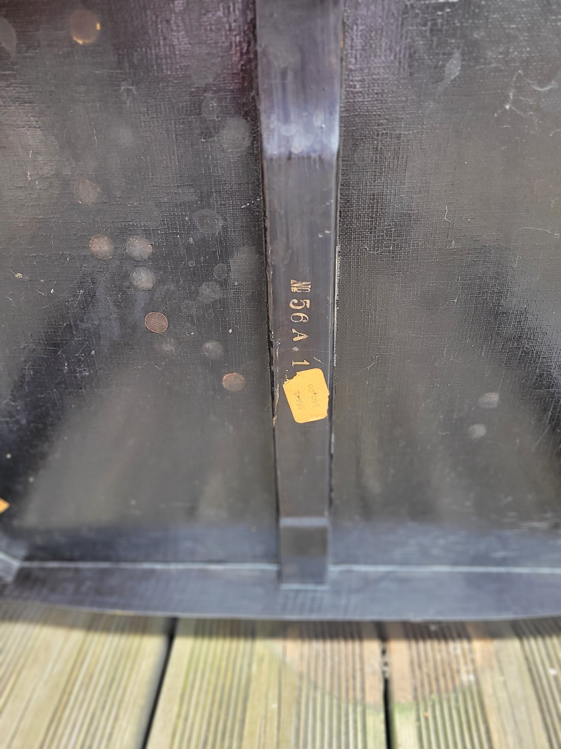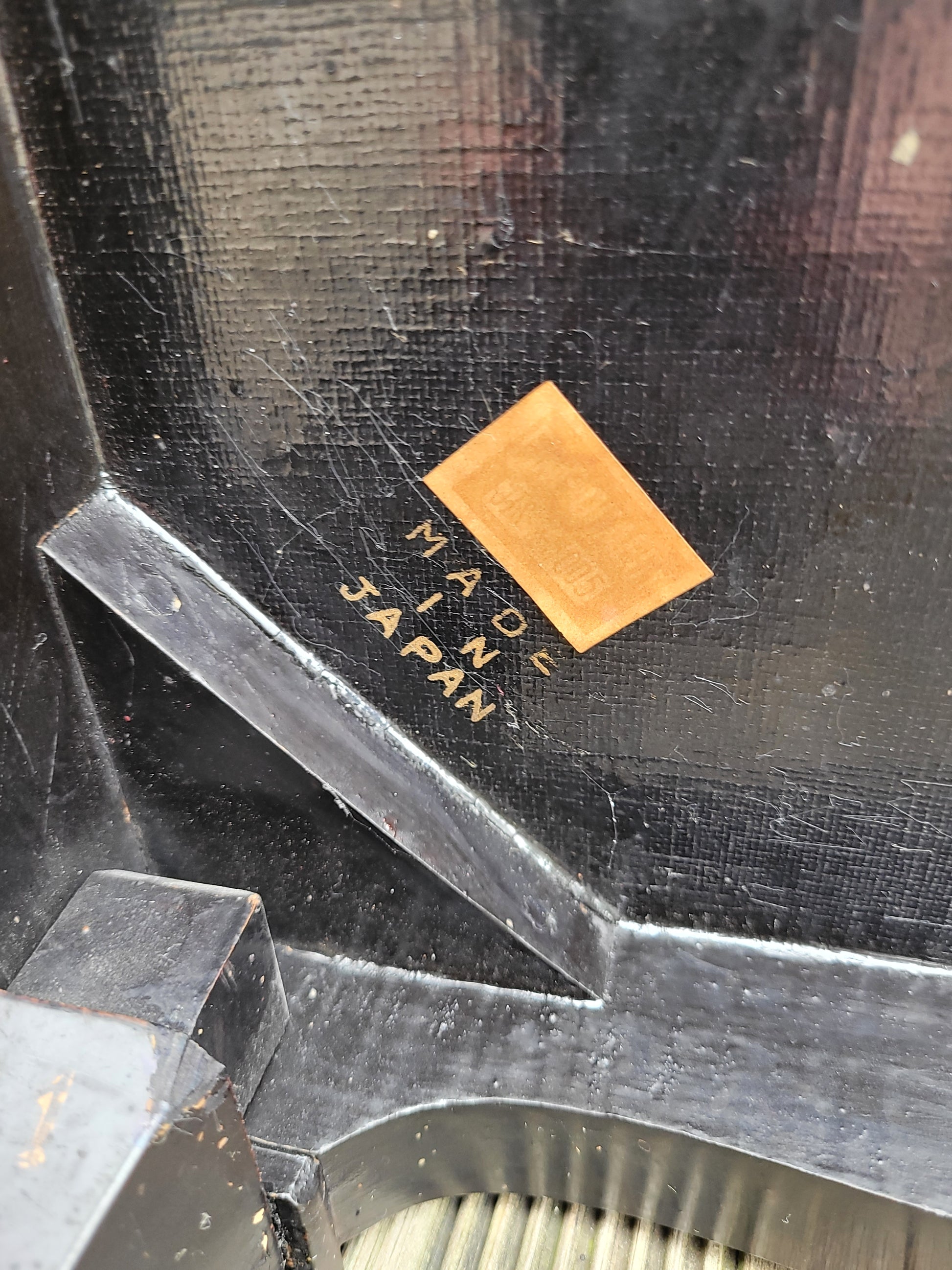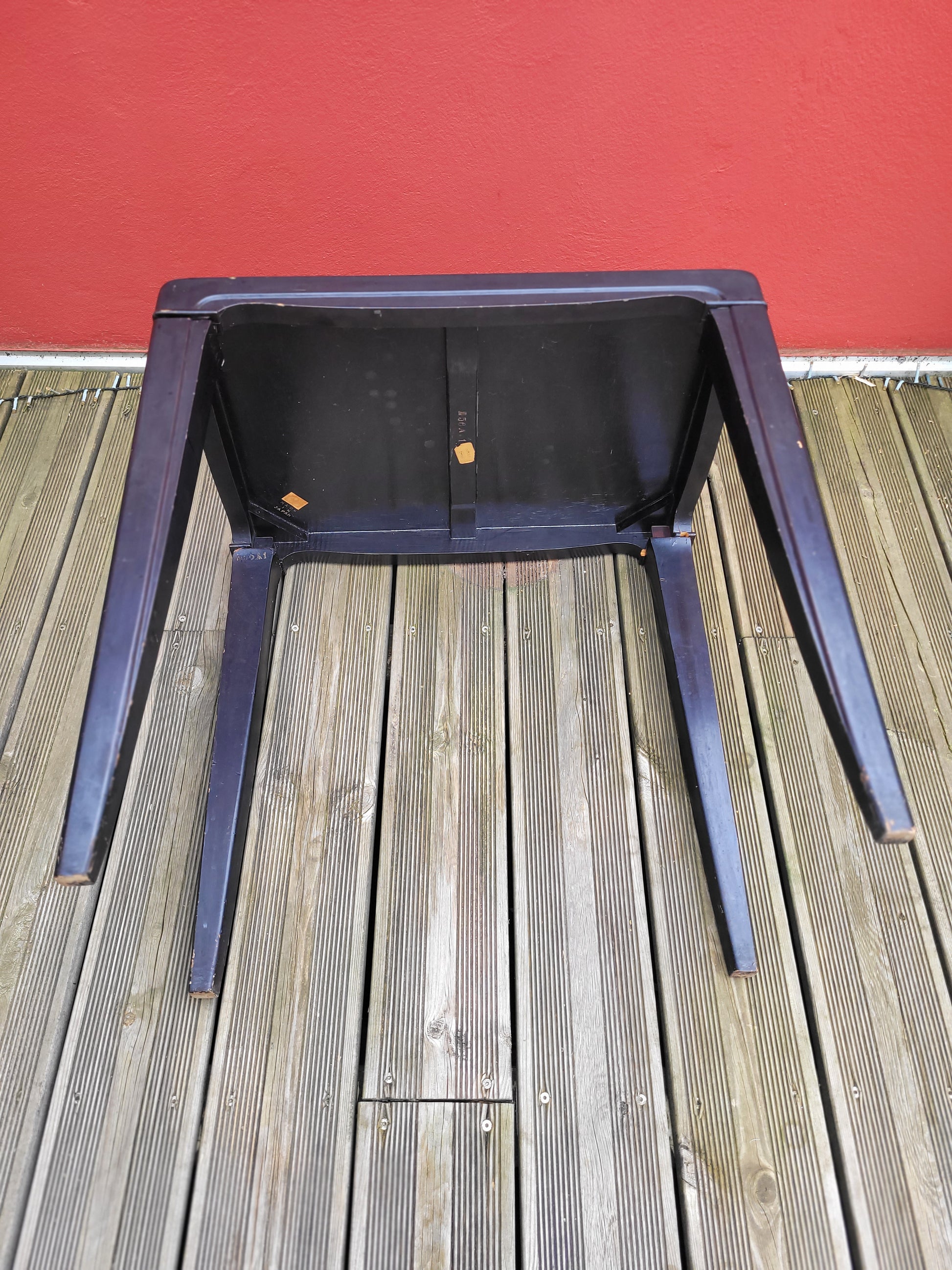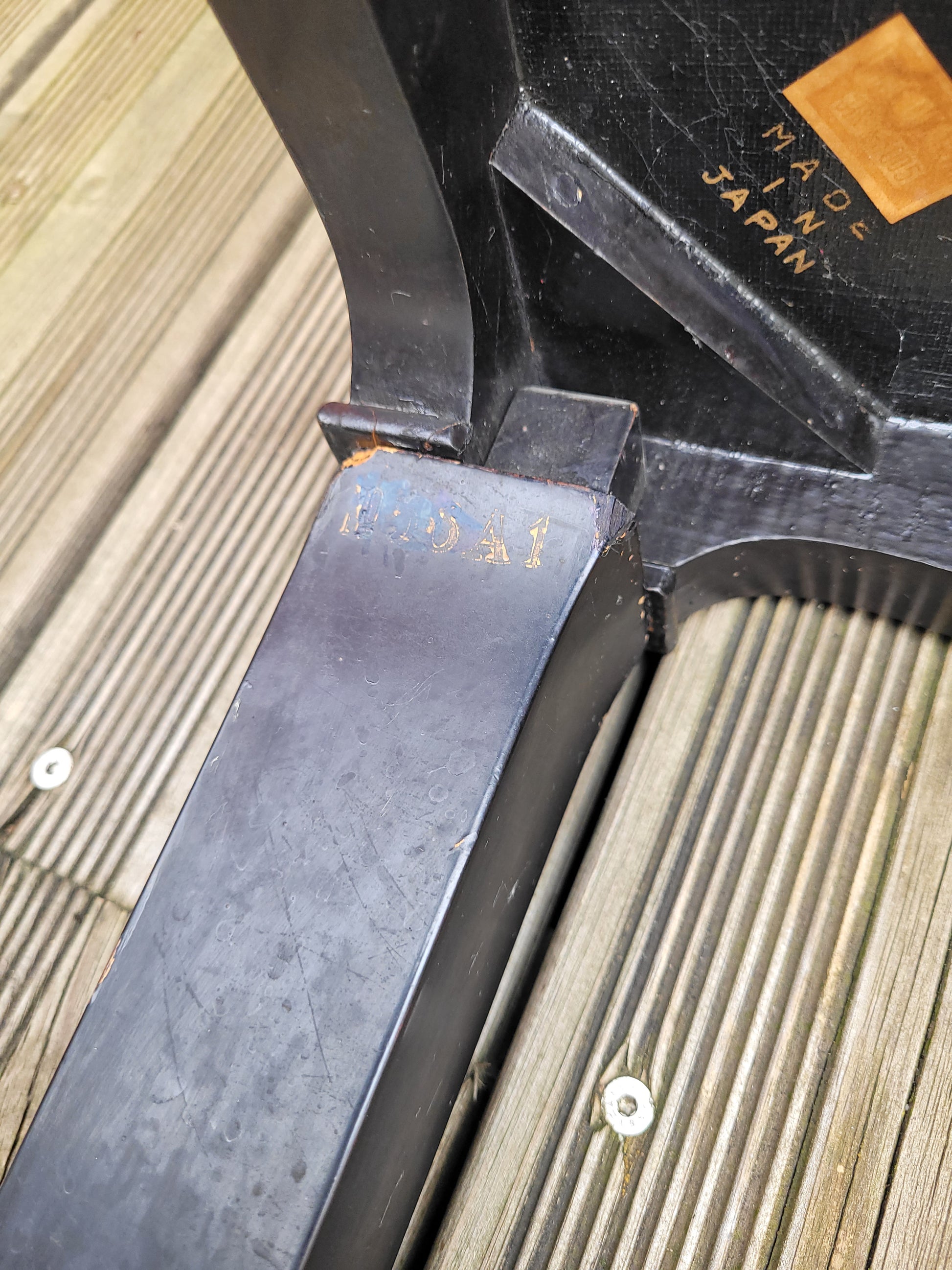 C'est une table d'appoint qui peut trouver sa place partout ! Légère et raffinée, très agréable à regarder de part ses couleurs et ses lignes, au toucher lisse. La laque a subit une légère patine du temps qui atténue et adoucit la vivacité du noir pour en faire un anthracite foncé très doux.