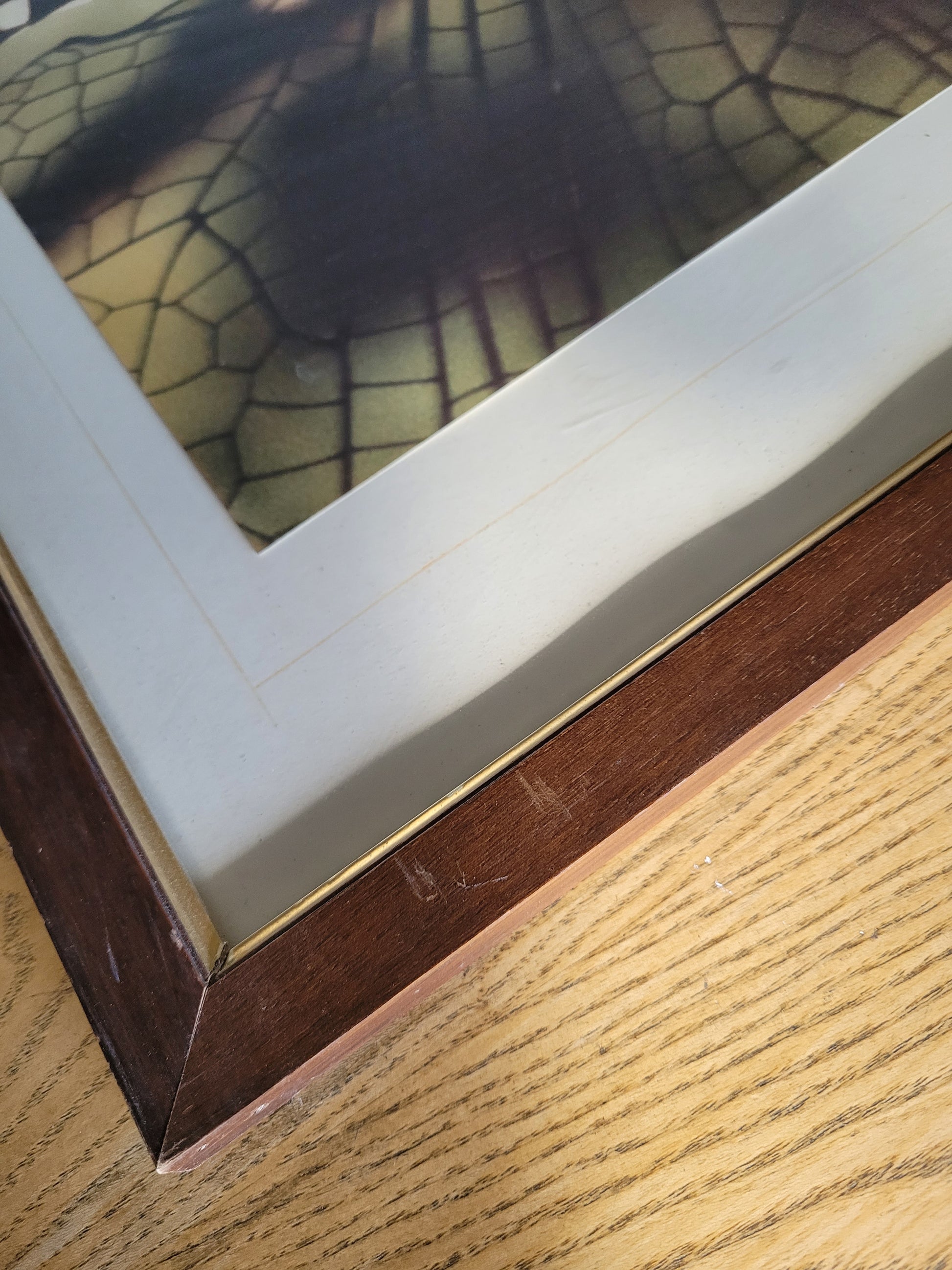 Le cadre est vintage et la photo est protégée par une vitre.