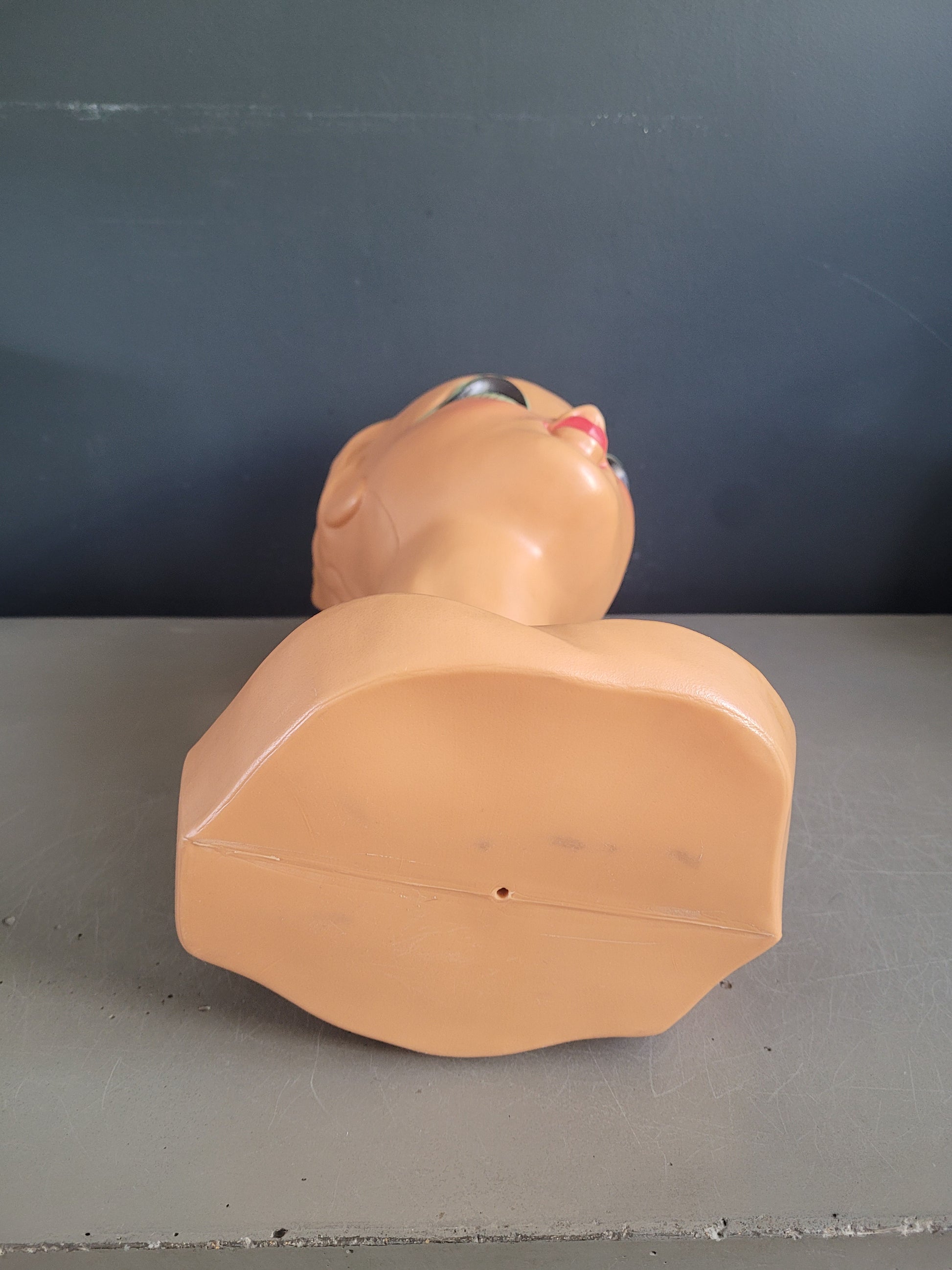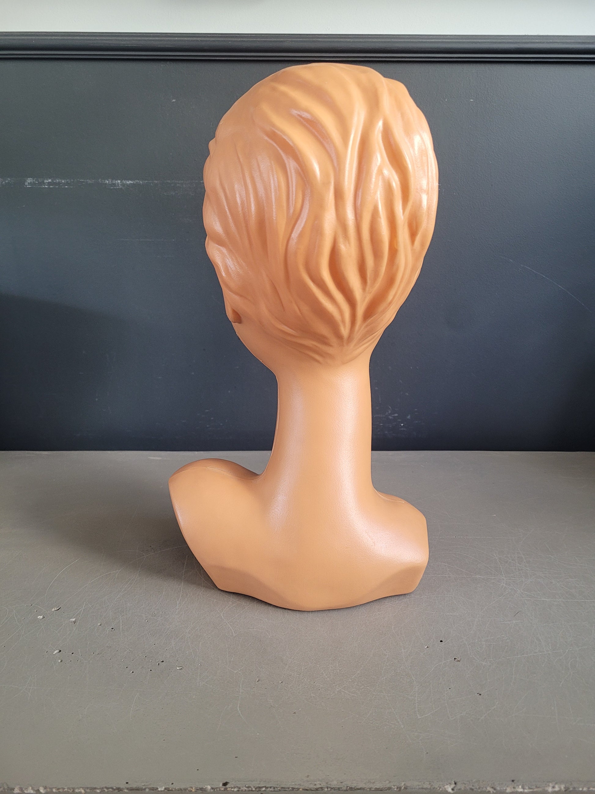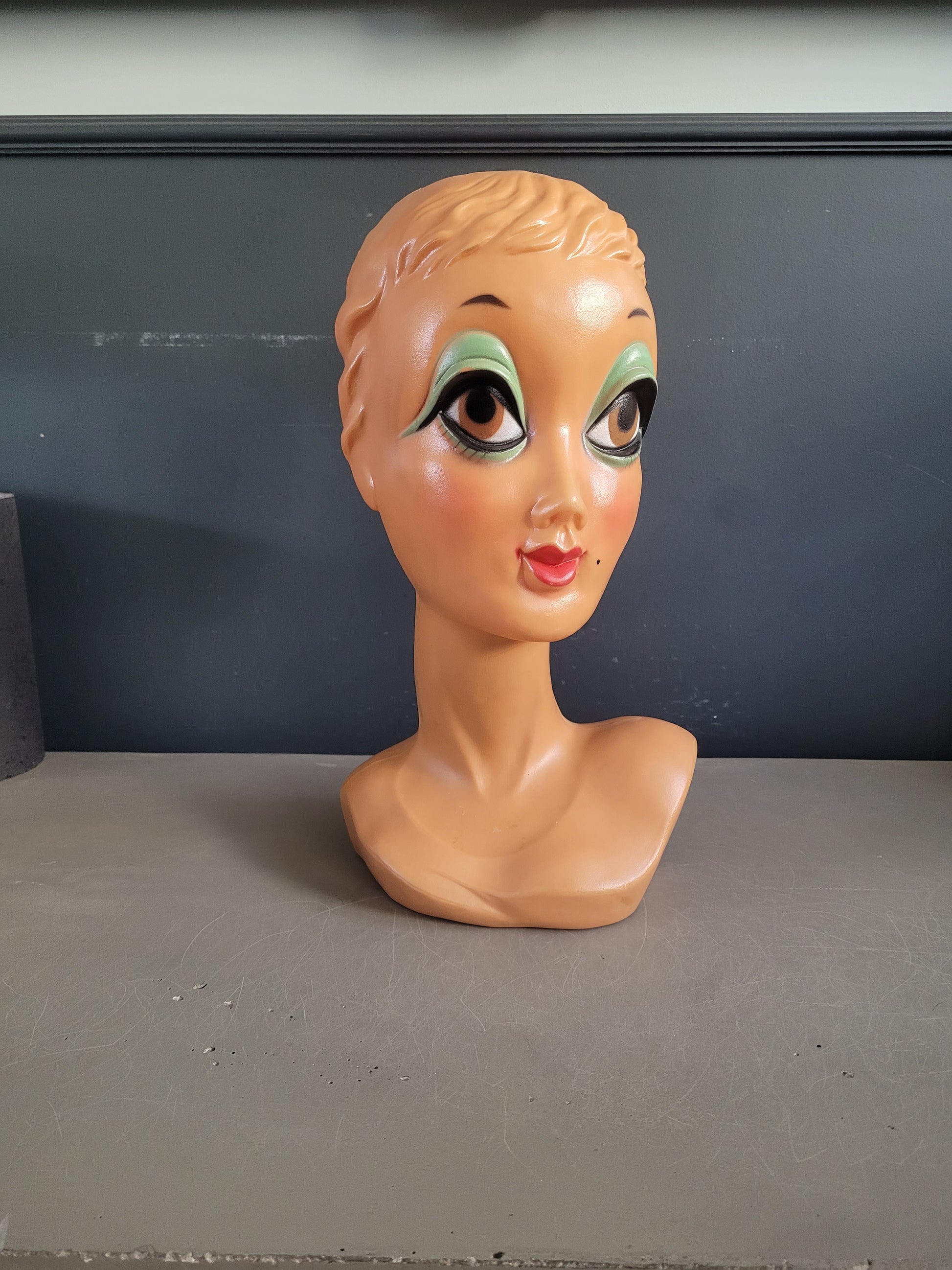 Magnifique tête à chapeaux Twiggy en plastique peint, la vitrine des 70's !
