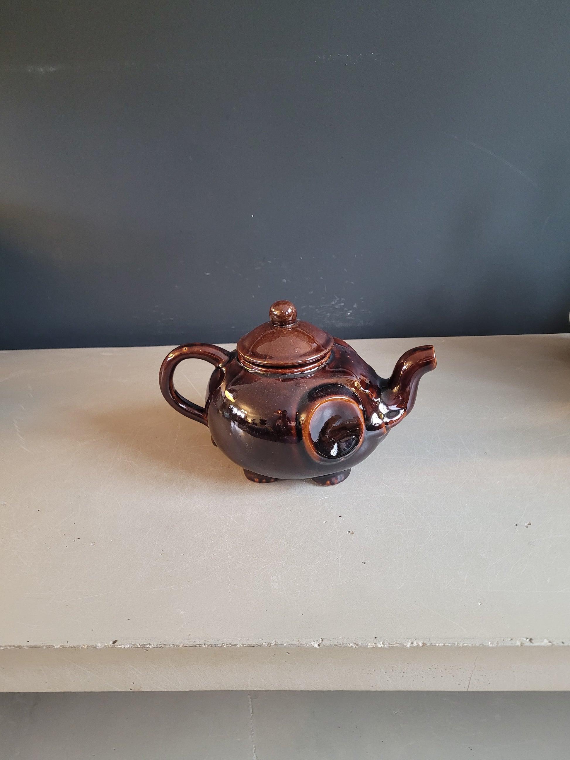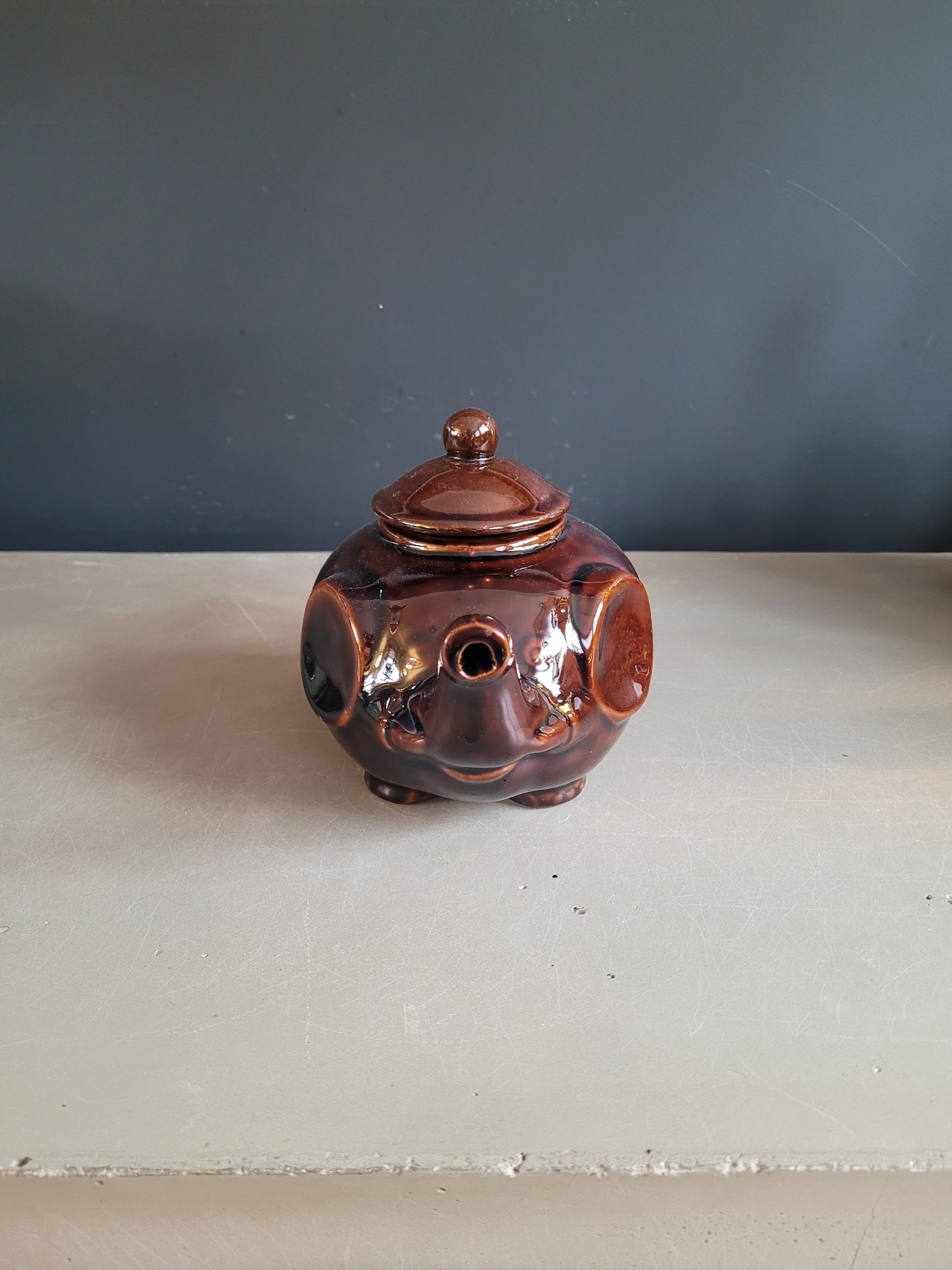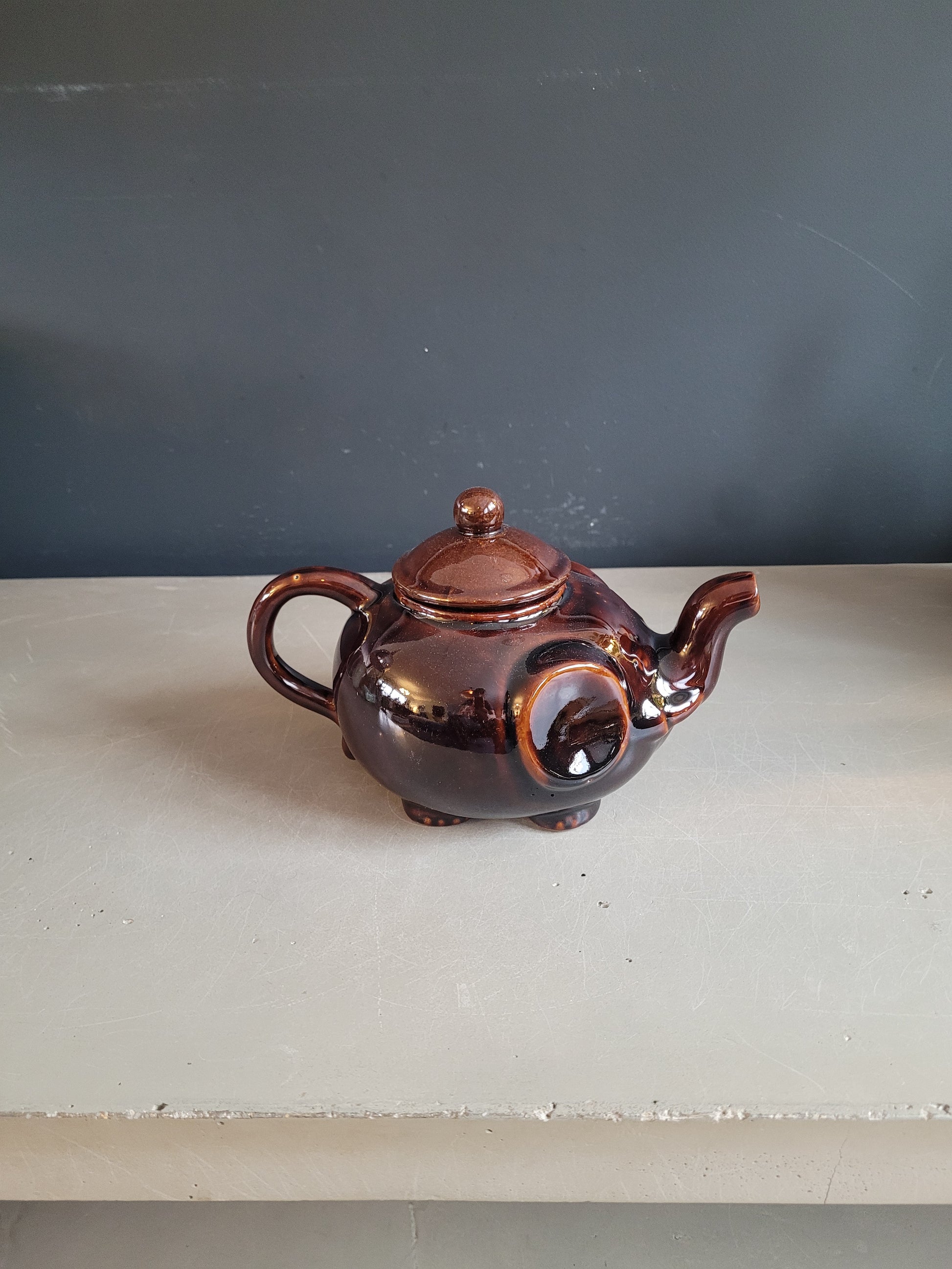 Très originale, cette théière éléphant avec son email marron chocolat brillant sort de l'ordinaire!