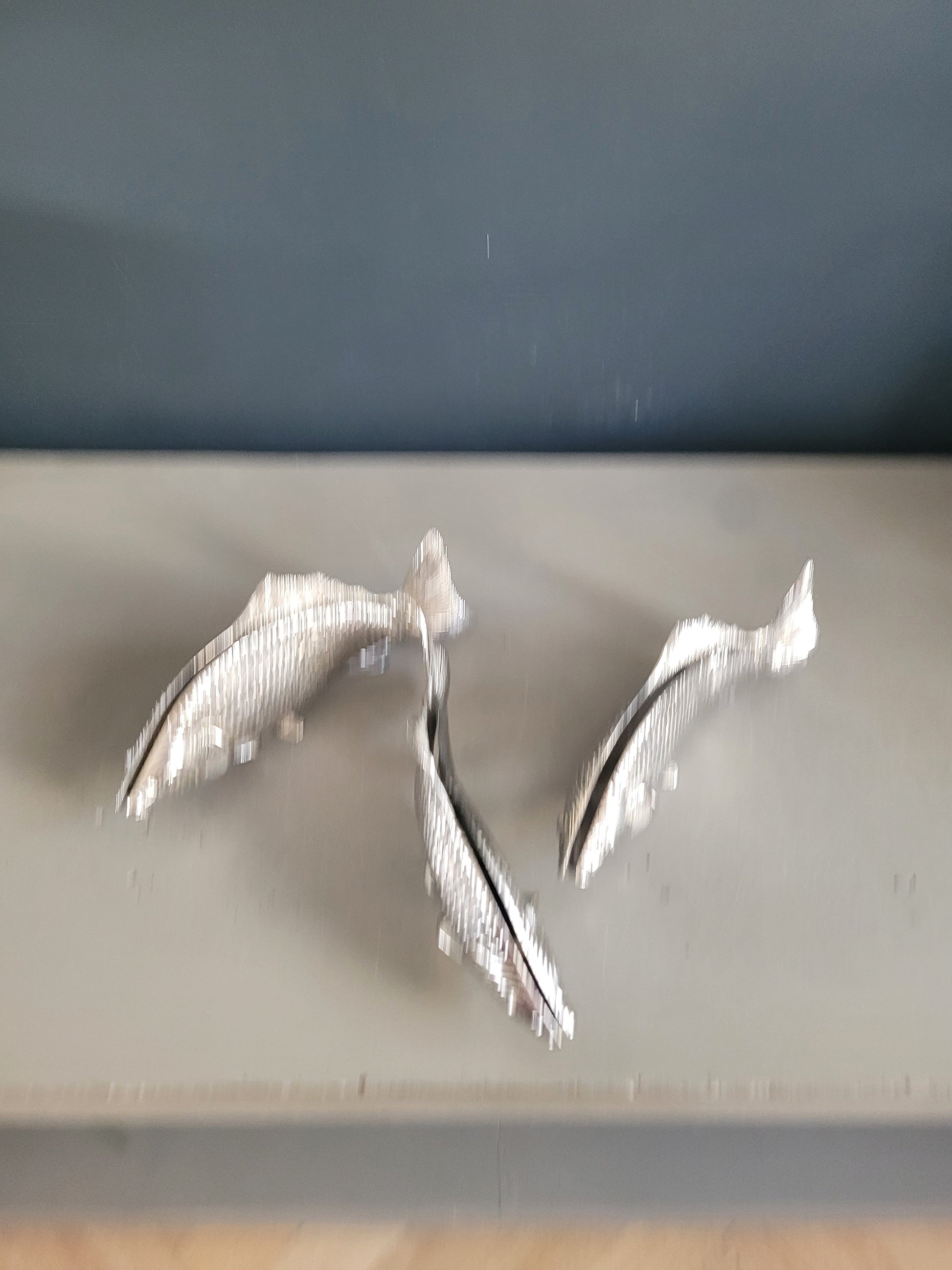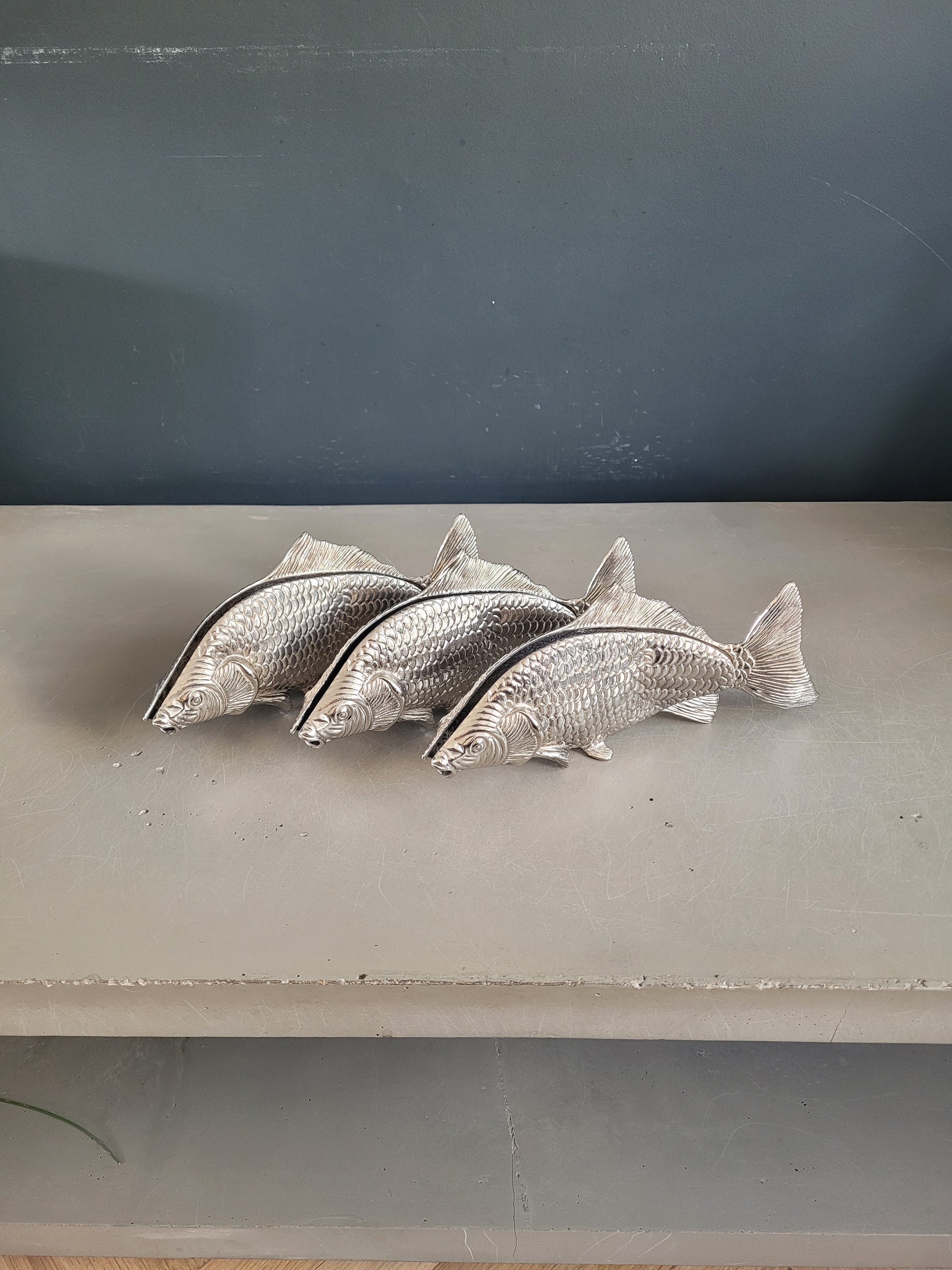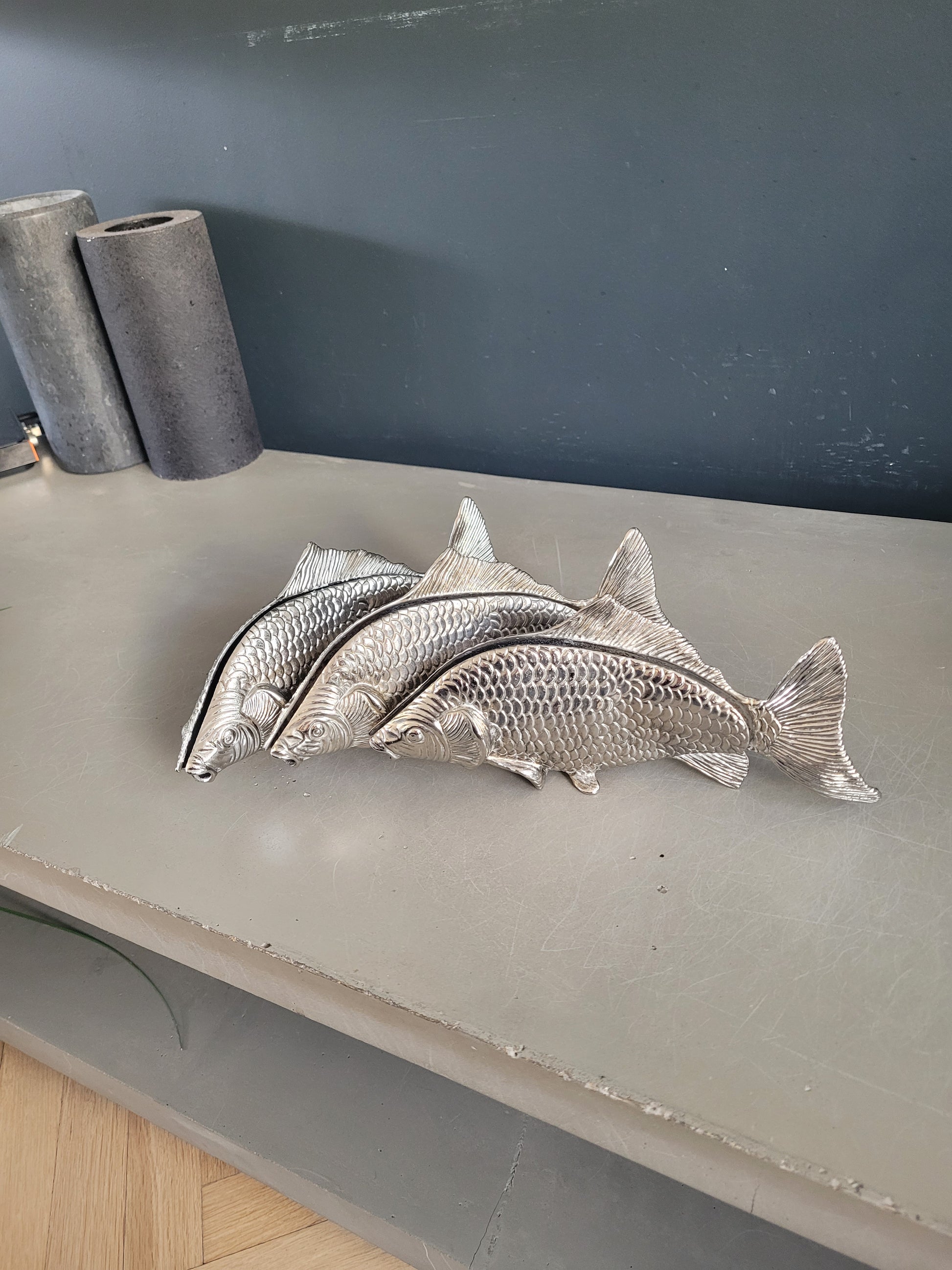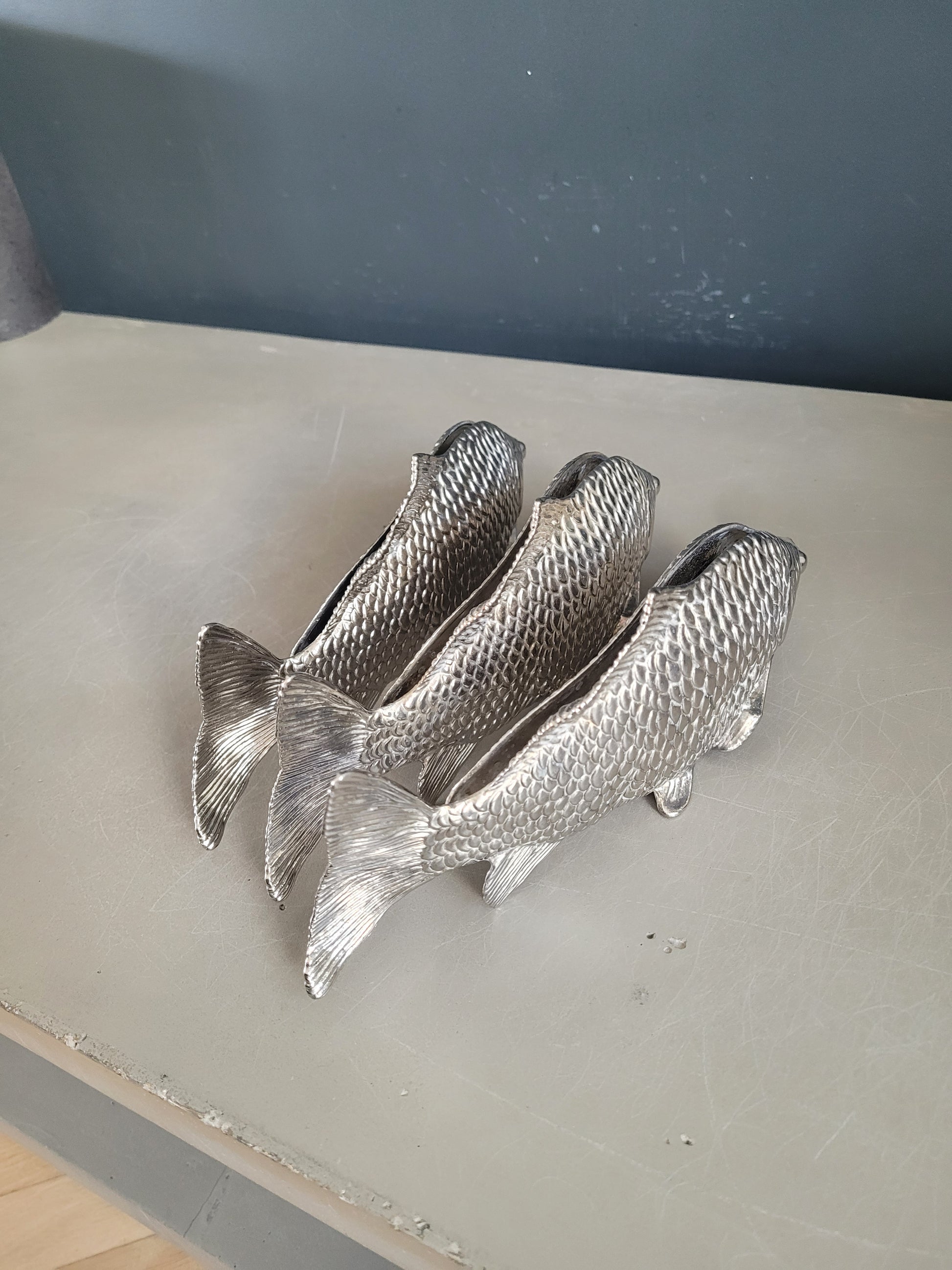 Superbe et rare, lot de 3 poissons porte-serviettes en métal argenté.