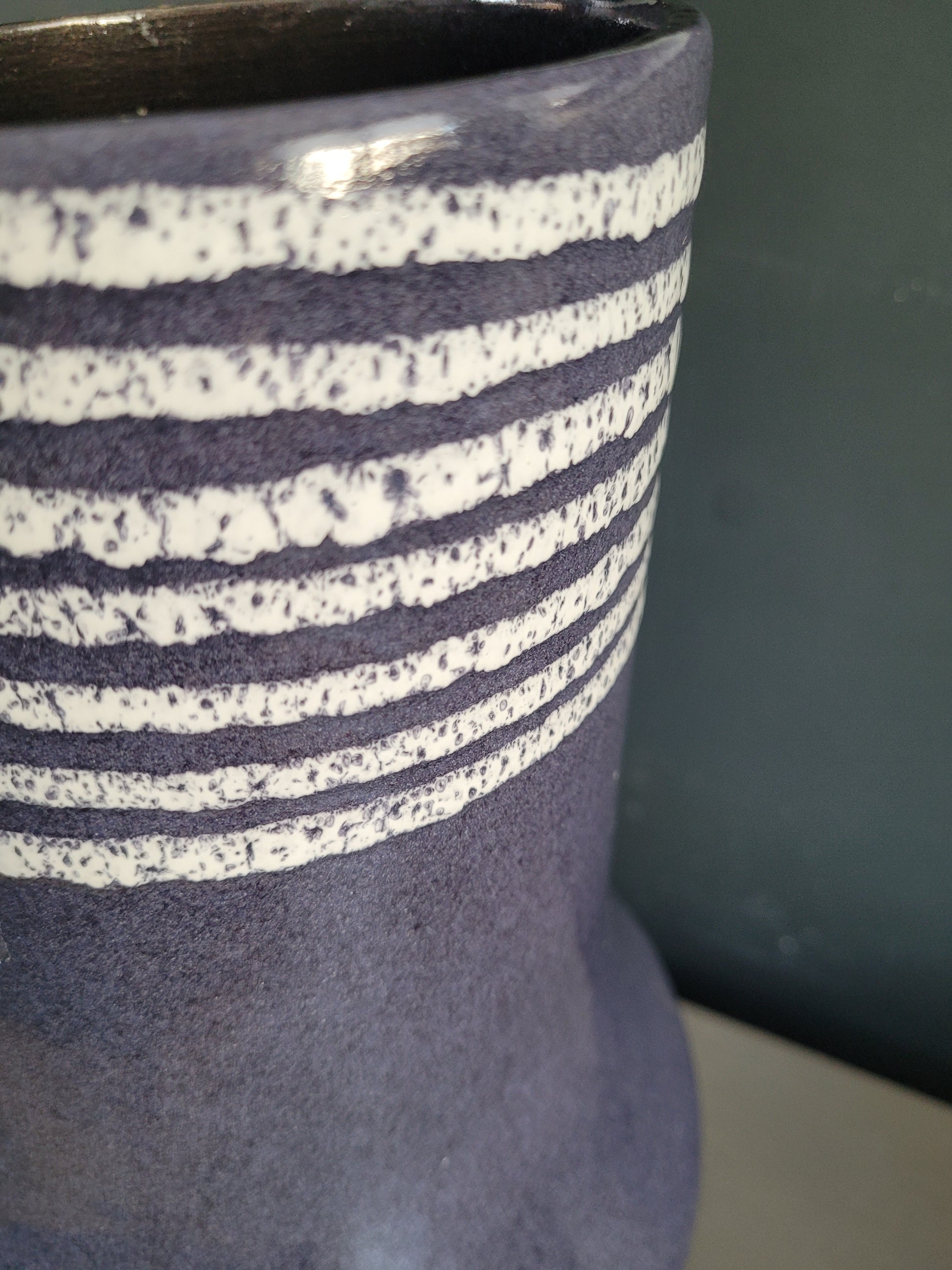 Une merveille, assez rare dans ces coloris, il peut être poser directement au sol, il est lourd et stable, aussi beau avec quelques fleurs ou branchages, que vide. Il peut aussi bien sûr être posé en hauteur pour un effet plus magistral!