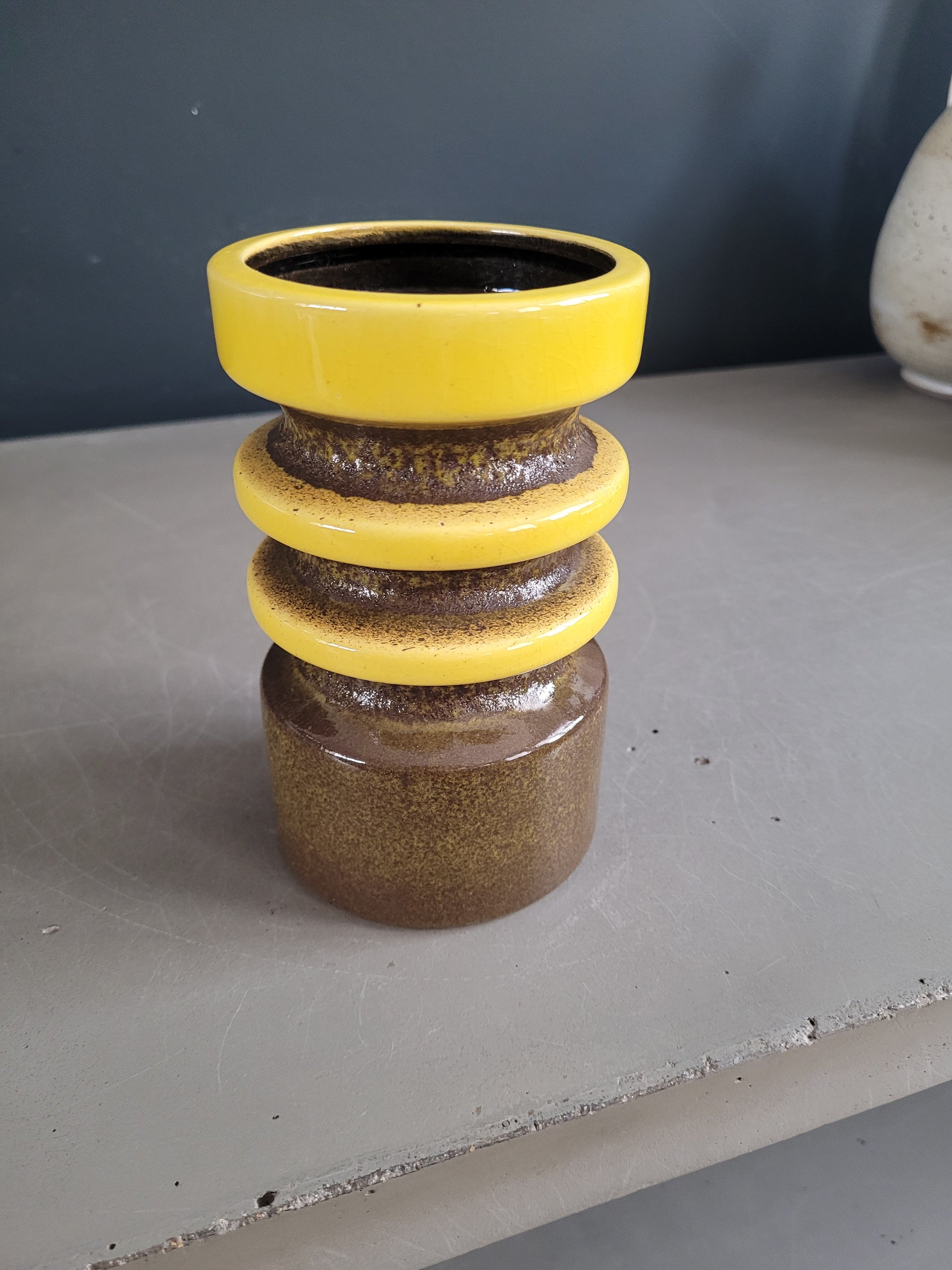Modèle relativement rare, très décoratif dans un style tres seventies, il ira très bien dans une déco vintage, scandinave ou bohème, seul ou en collection avec d'autres céramiques.