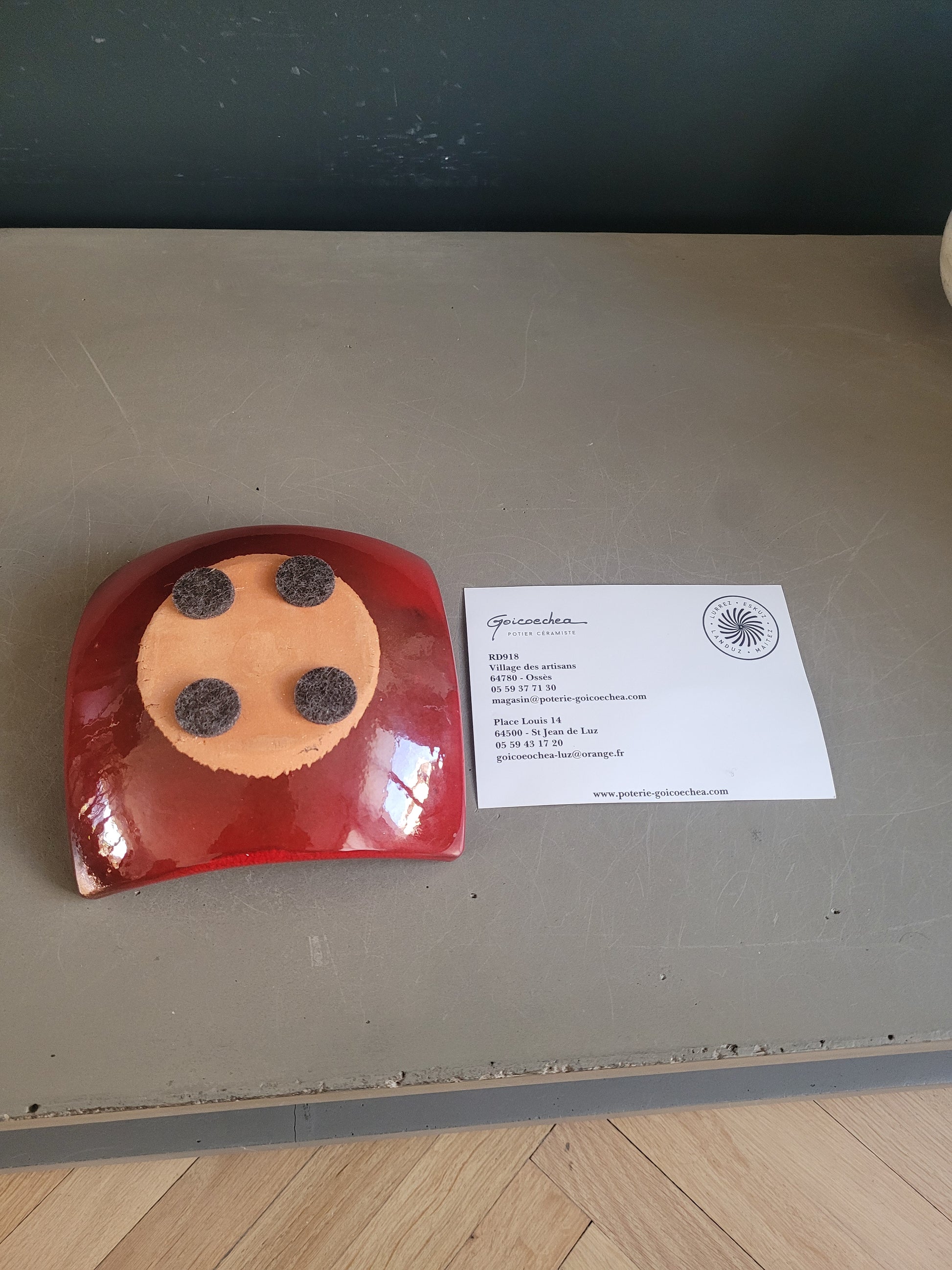 Tres bel objet, pratique et décoratif, fabriquée au Pays Basque par la poterie Goicoechea réputée pour la grande qualité de ses pièces et son savoir-faire artisanal.